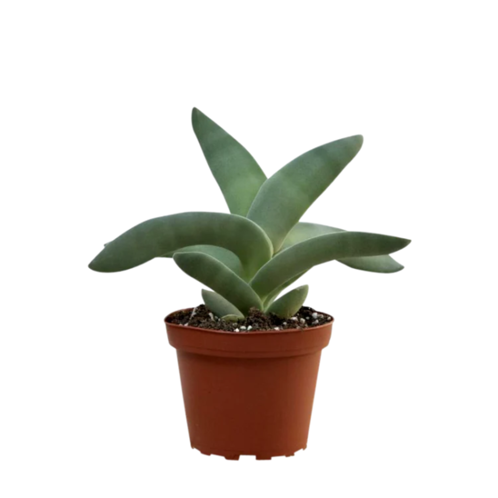 | Descriere generală | Plantă suculentă decorativă cu frunze groase arcuite, dispuse în perechi, de culoare gri-verzui. |