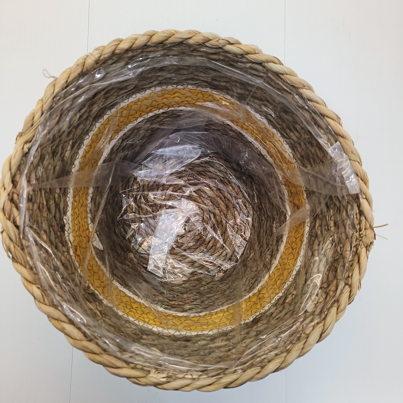Ghiveci decorativ din material împletit rezistent și durabil.