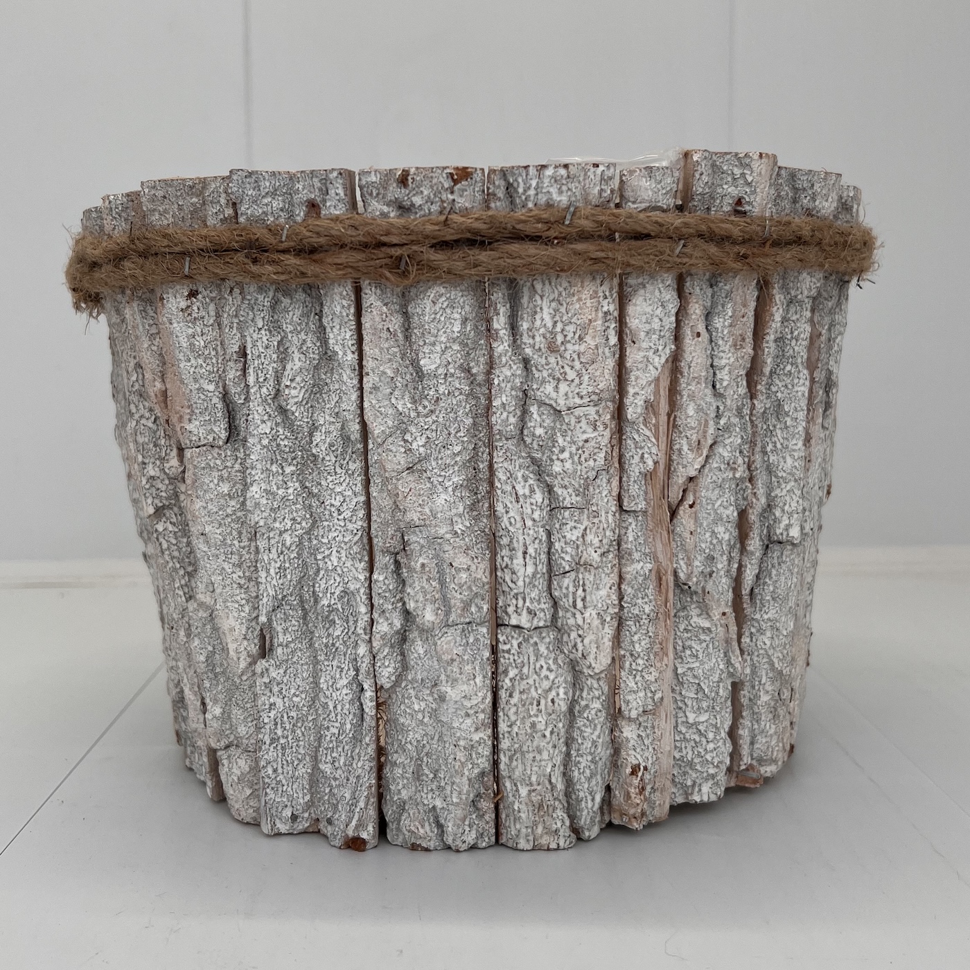 Ghiveci decorativ lemn LY001, Alb (h 17,5 cm)