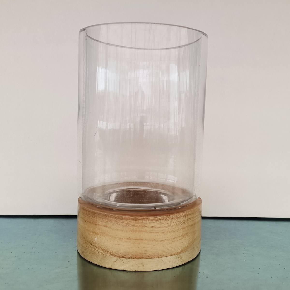 Ghiveci din sticlă cu bază din lemn (h 16 cm)