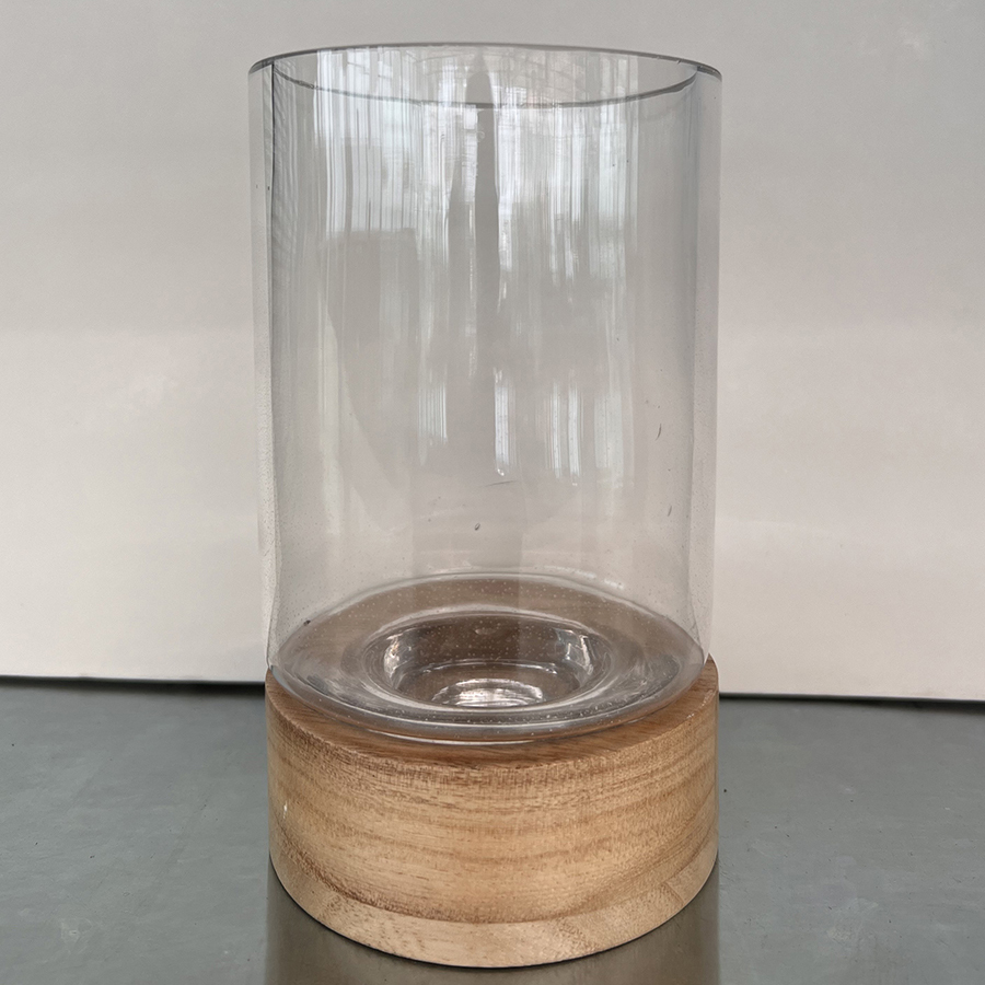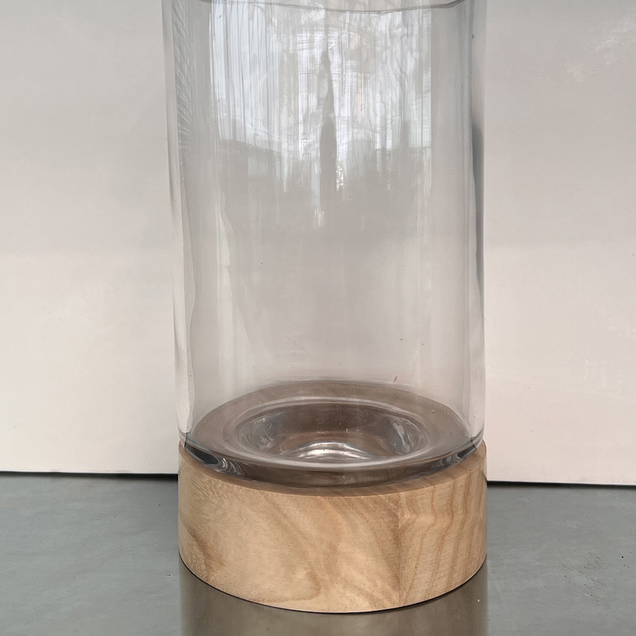 Ghiveci din sticlă cu bază din lemn (h 21 cm)