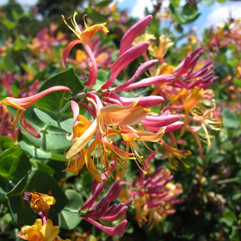 (adesea Lonicera japonica sau varietăți sempervirescente / semi-sempervirescente)